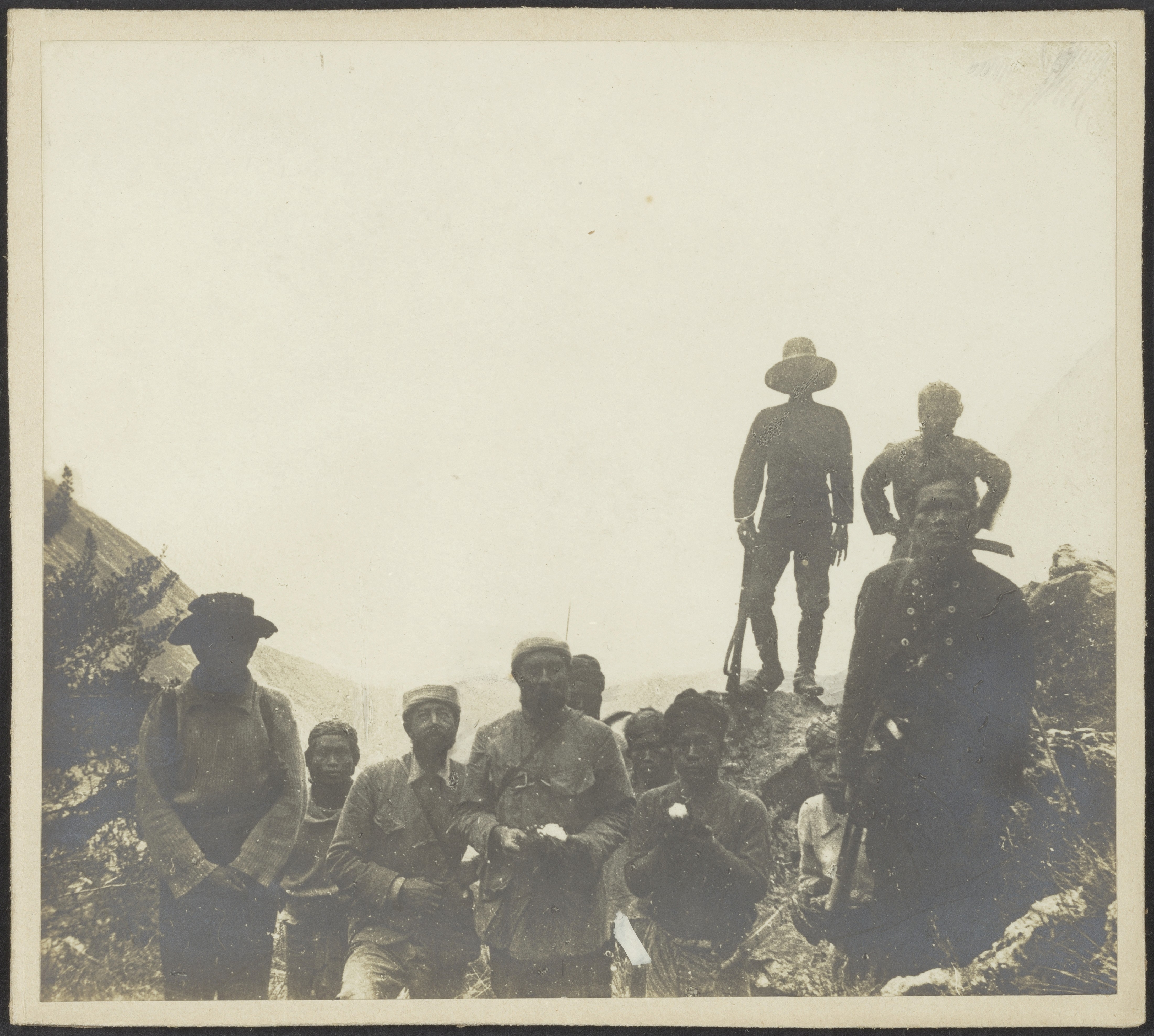 Foto: Leden van de Lorentz-expeditie, onder wie expeditieleider H.A. Lorentz en Dayak-dragers, bij de sneeuwgrens op de Wilhelminatop (tegenwoordig Puncak Trikora), in het toenmalige Nederlands-Nieuw-Guinea - 1910. Collectie Wereldmuseum.